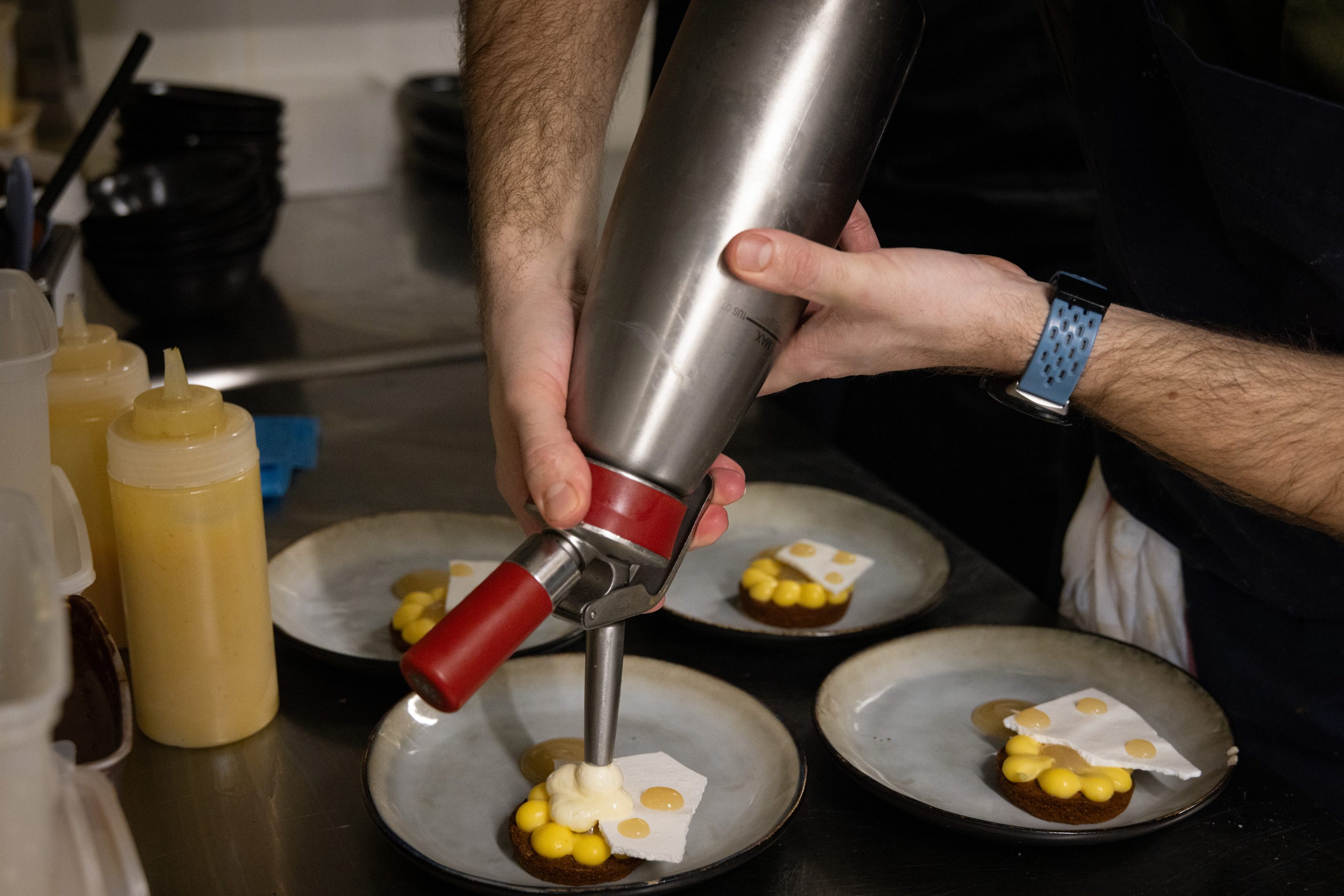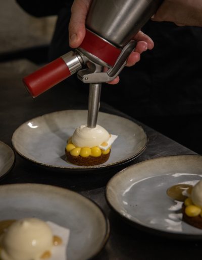 En 2019, Joshua rejoint l’aventure Toques & Tanins, où il se voit offrir les clés de la cuisine. Pendant 3 ans, il dévoile une perfection à toute épreuve et un équilibre sans faille… pour le plus grand bonheur des clients du restaurant pessacais !